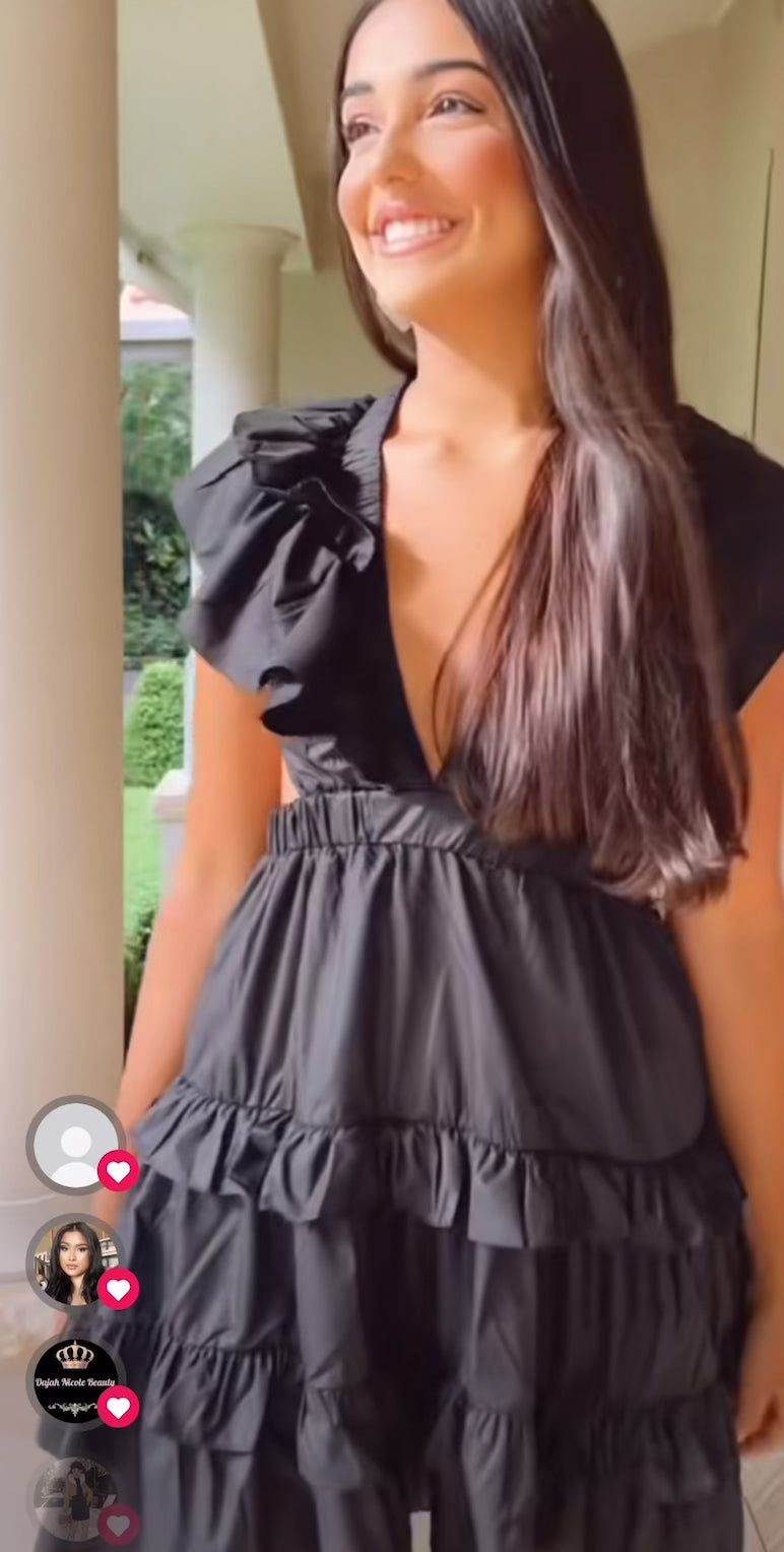 The Isaa Mini Dress is the perfect summer dress. Featuring a gorgeous ruffle neckline and tiered skirt. Both Yellow and Black will take you from day to night! Pair with your favourite flats or heels!