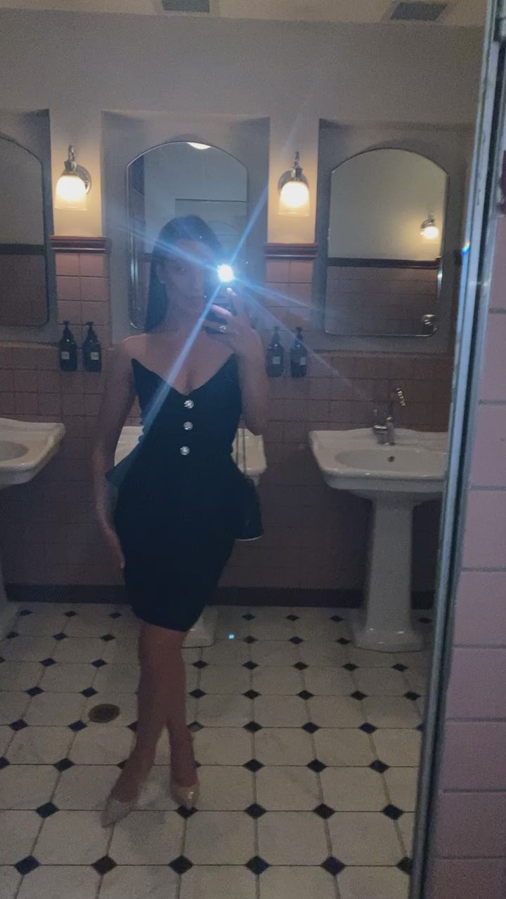 You'll be irresistible in our Johnnie Mini Dress. Featuring a seductive cut out V design on the bust, the Johnnie Mini Dress will make you feel like the epitome of elegance - complete with a finishing touch of silver buttons. Style with heels and earrings to complete this look!